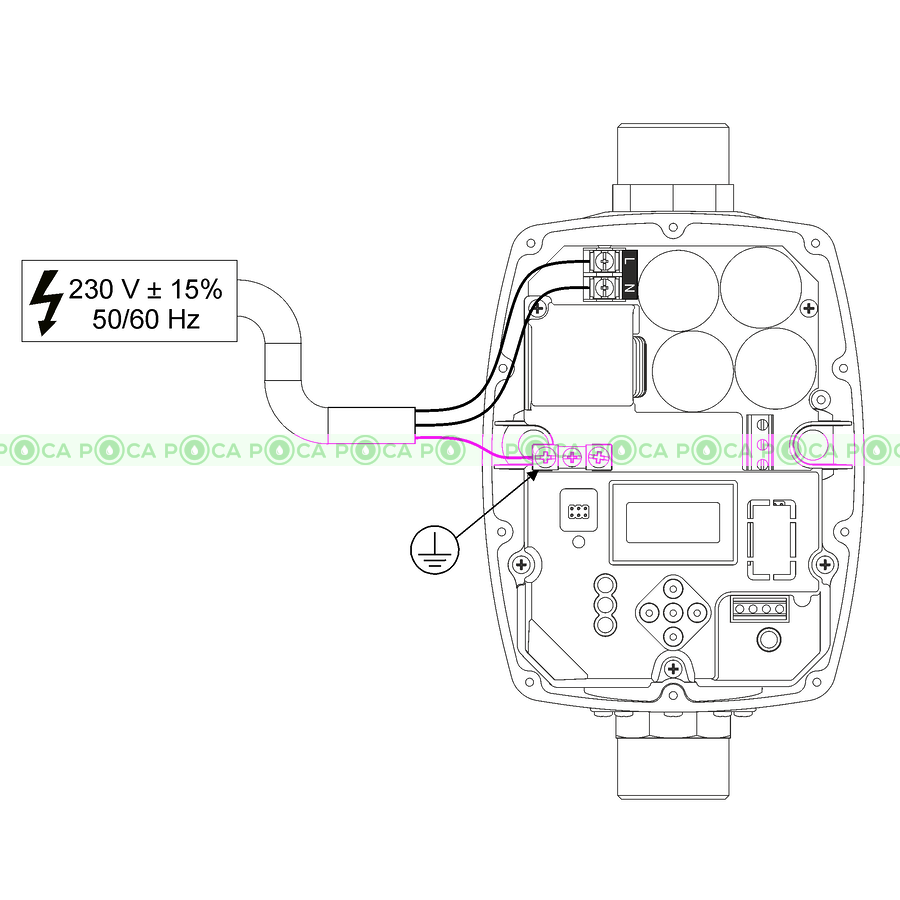 Универсальная модель для электрических насосов с однофазной мощностью двигателя 230 В и трехфазной мощностью двигателя 230 В.