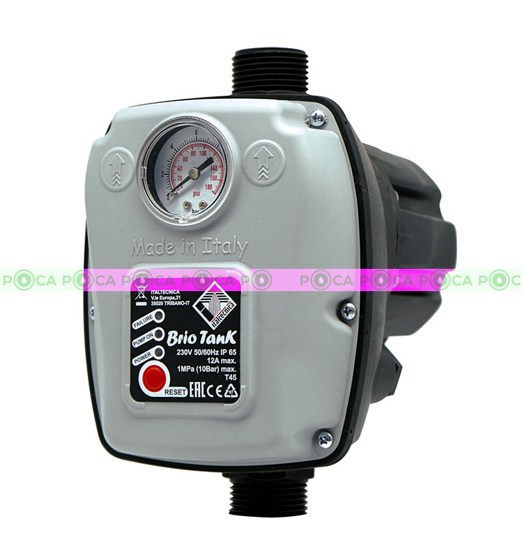 • Он автоматизирует запуск электрического насоса после снижения давления (открытие кранов) и его остановку, когда поток жидкости прерывается при максимальном уровне давления электрического насоса (закрытие кранов).
