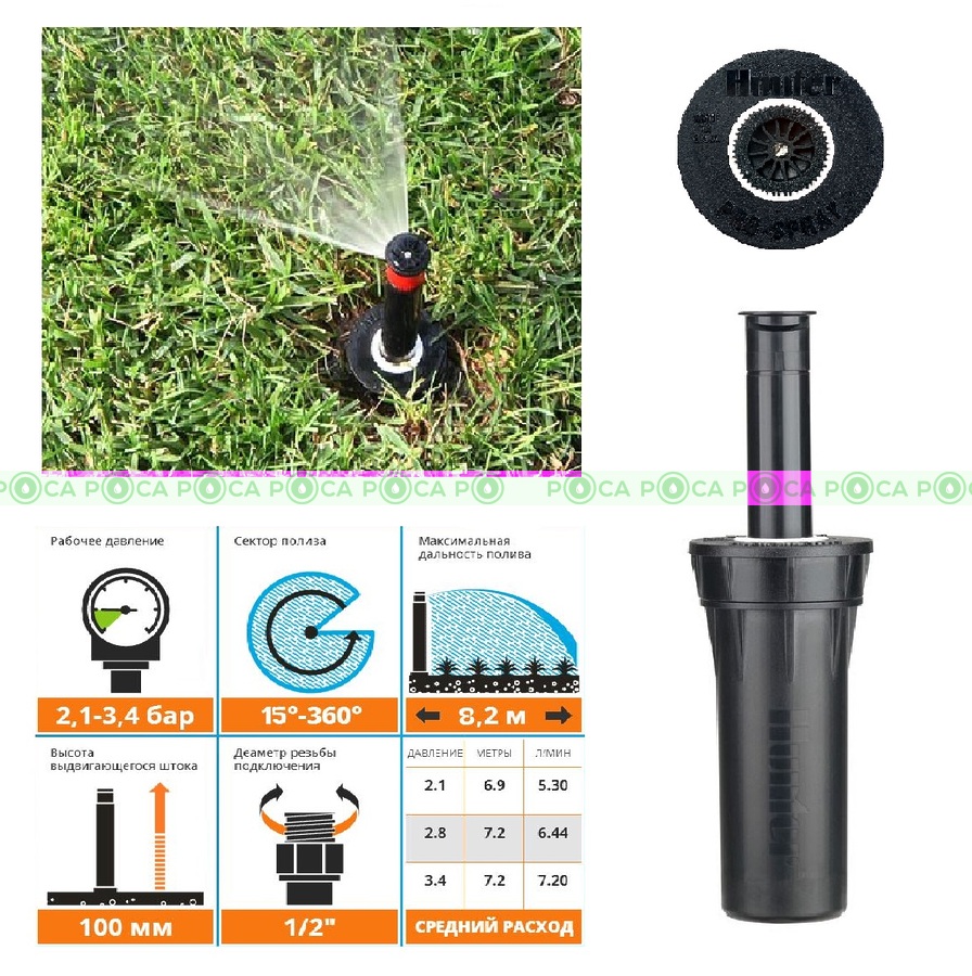 Дождеватель PROS-04-PRS30, Н=10см (без сопел) + регулятор дав. 2.1 бар HUNTER