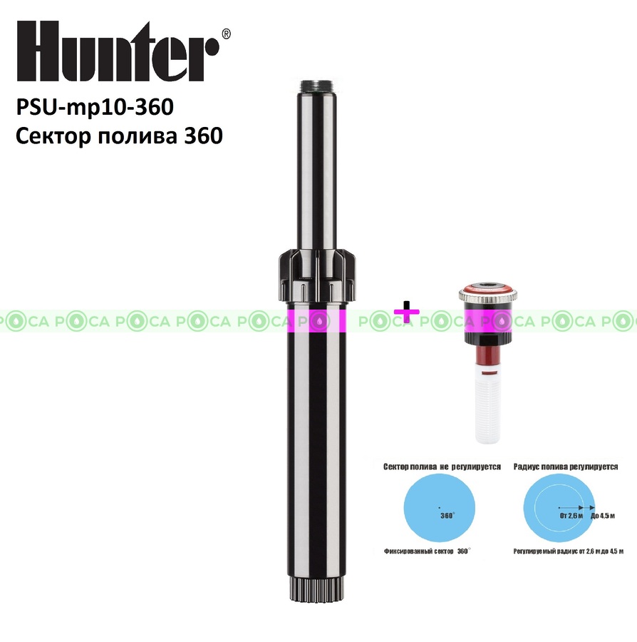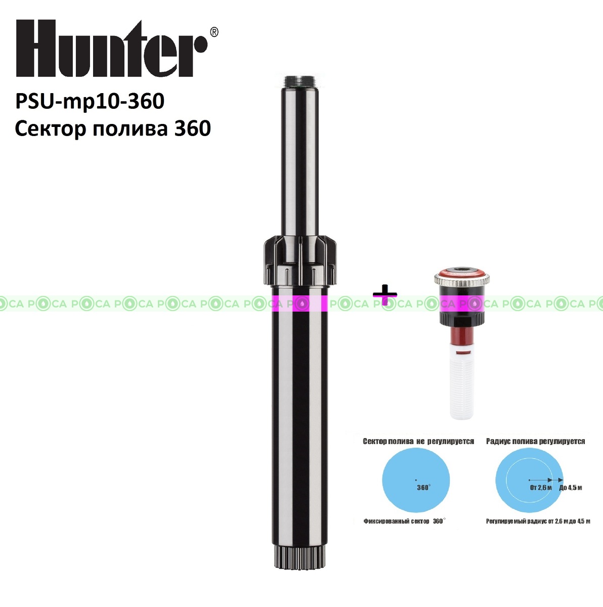 Дождеватель с насадкой HUNTER PSU mp 10360 (2.5 - 4.5 m радиус), сектор полива 360°
