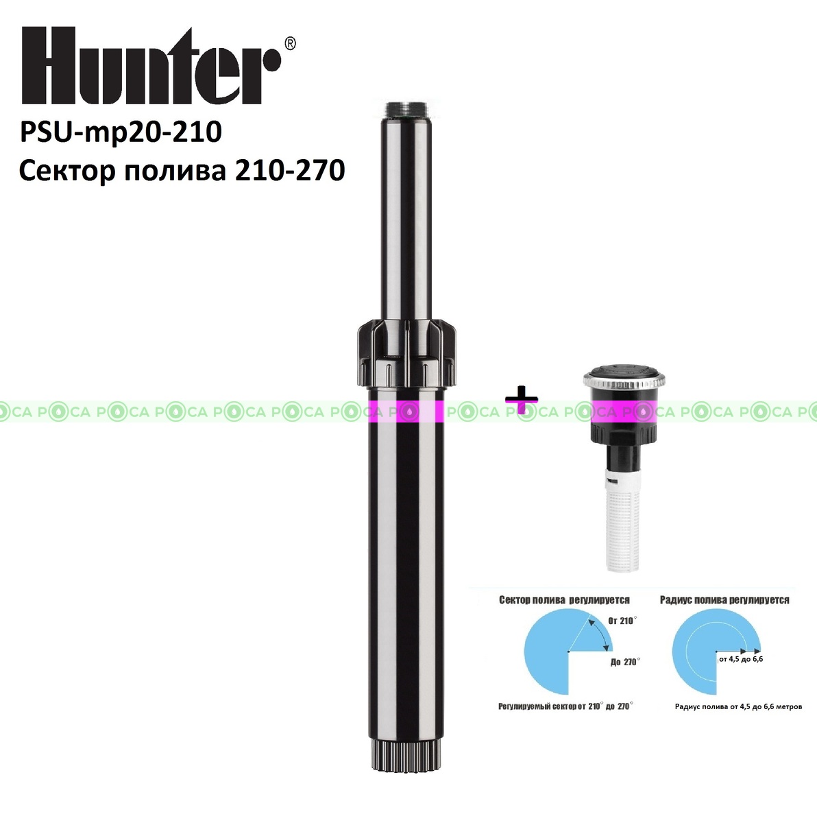 Дождеватель с насадкой HUNTER PSU mp 20210 (4,5 - 6,5 m радиус), сектор полива 210° -270°
