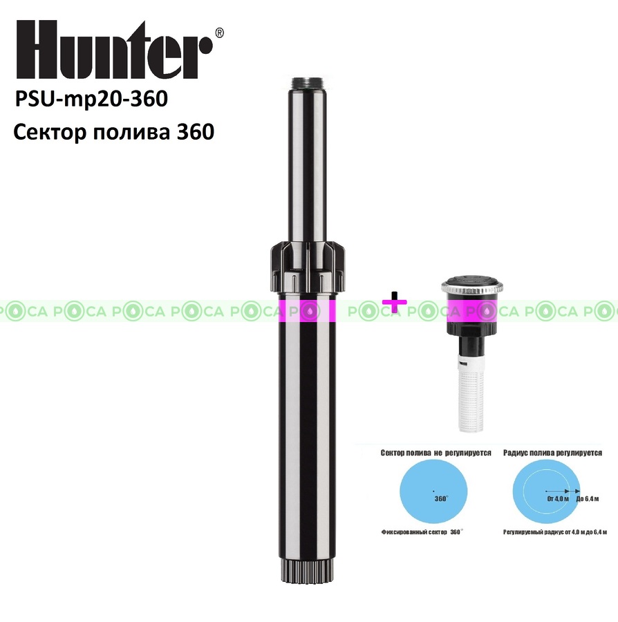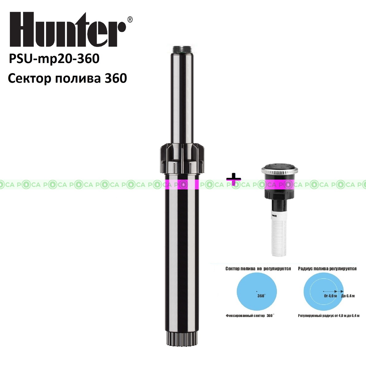 Дождеватель с насадкой HUNTER PSU mp 20360 (4,5 - 6,5 m радиус), сектор полива 360°