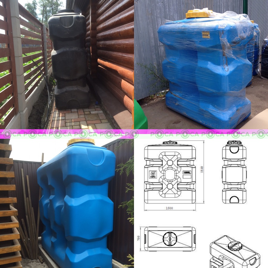 Емкость для воды из пластика прямоугольной формы создана для использования в помещениях. Ширина емкости позволяет проносить емкость в большинство дверных проемов. Такая емкость решает задачу хранения большого запаса воды в помещениях с ограниченным пространством.