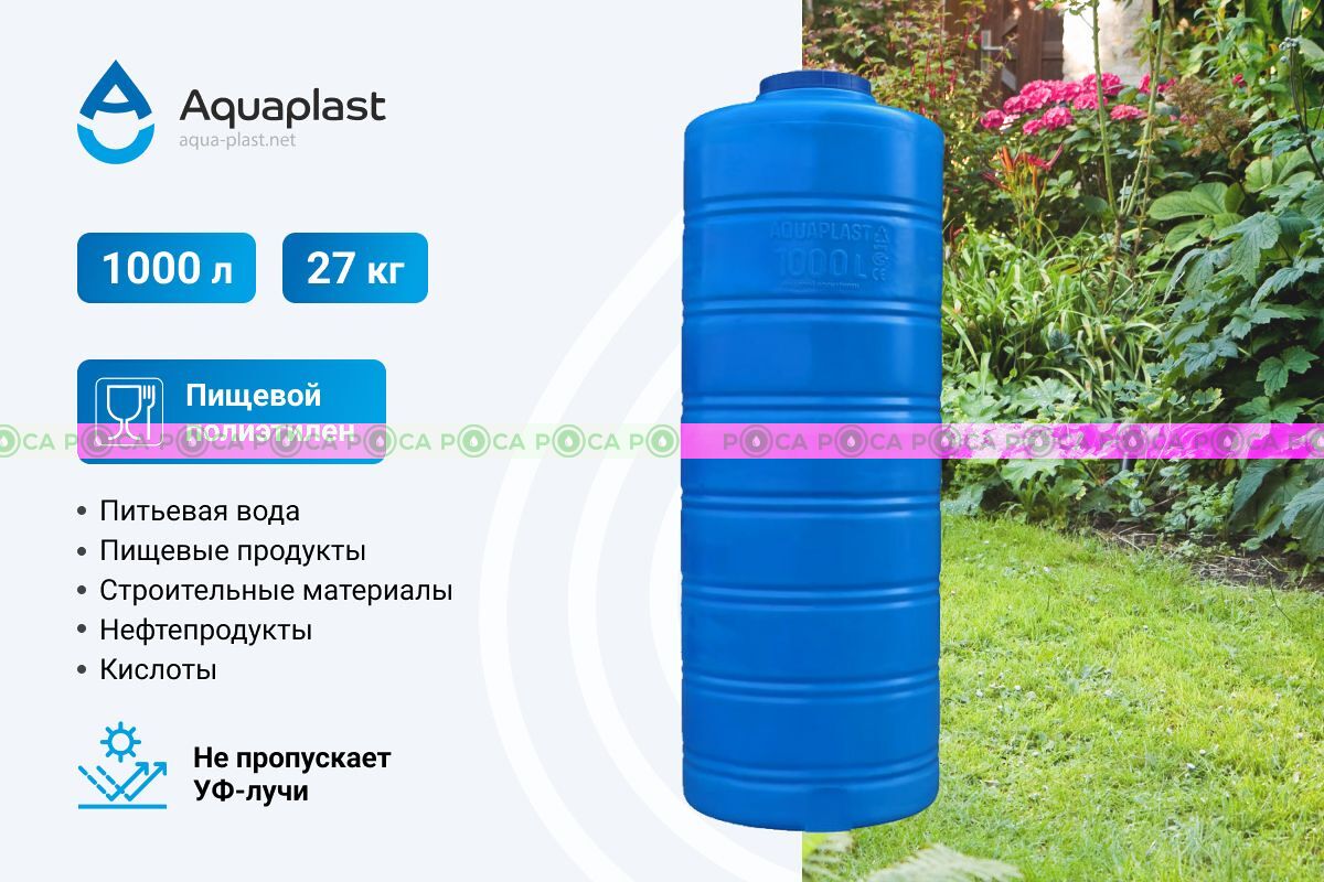 Емкость цилиндрическая вертикальная 1000 литров ВЫСОКАЯ (синяя) АКВАПЛАСТ