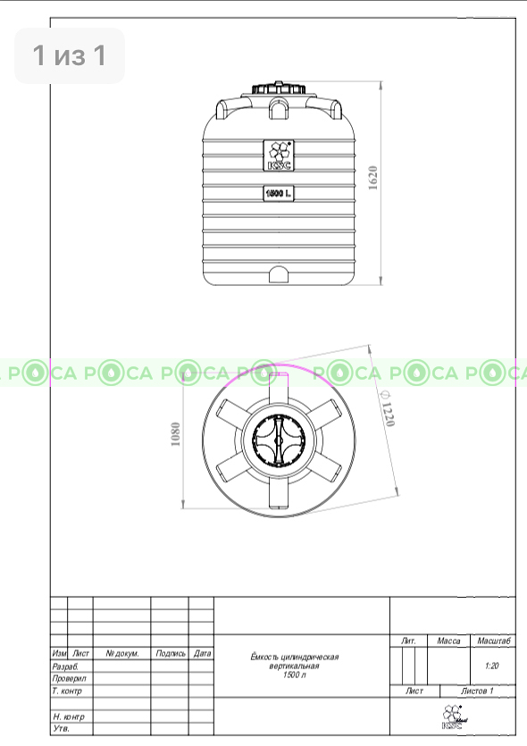 Емкость цилиндрическая вертикальная 2000 литров (черная) АКВАПЛАСТ