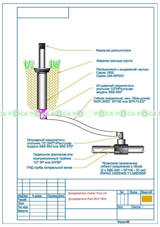Комплект подключения дождевателя 50 см HUNTER