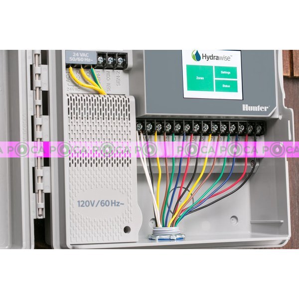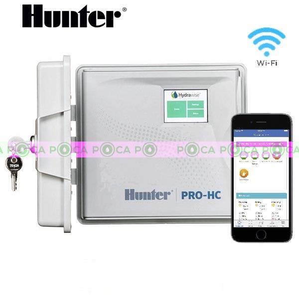 Умный смарт-контроллер Hunter версии PRO HC-2401i E для размещения внутри помещений. Обладает встроенным модулем Wi-Fi , что позволяет подключать контроллер к интернету. Специальное приложение "Гидровайс" для управления поливом из любой точки мира доступно в APP STORE и Google play или вы можете использовать web интерфейс. Контроллер PRO-HC позволяет использовать данные метеостанции и настраивать время работы полива в автоматическом режиме, это позволяет значительно экономить водные ресурсы. Пульт управления поливом имеет цветной сенсорный дисплей.