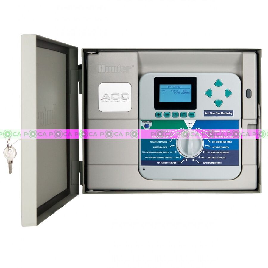 ACC - это самый продвинутый модульный пульт управления Hunter, предназначенный для крупномасштабных коммерческих проектов. Адаптируемая конструкция позволяет не только изменять количество зон полива, подстраиваясь под проект, но легко и быстро произвести апгрейд пульта для подключения к системе централизованного управления Hunter. То, что действительно отличает ACC от других пультов – это его безупречные рабочие характеристики. Интеллектуальные настройки и наличие мощного трансформатора позволяют ACC выполнять до 6 программ одновременно, осуществляя автоматический полив в кратчайшие сроки. Контроль потока в режиме реального времени позволяет пульту управления быстро реагировать на превышение нормы по зоне и отслеживать расход воды в системе. ACC имеет в общей сложности 6 автоматических и 4 настраиваемые вручную программы, которые помогают эффективно использовать водные ресурсы и осуществлять полив в необходимые сроки. Большой ЖК дисплей с подсветкой пульта ACC позволяет легко и удобно произвести настройку зон и присвоить названия программам. Также в ACC предусмотрена возможность подключения датчика Solar Sync для повышения эффективности использования воды.